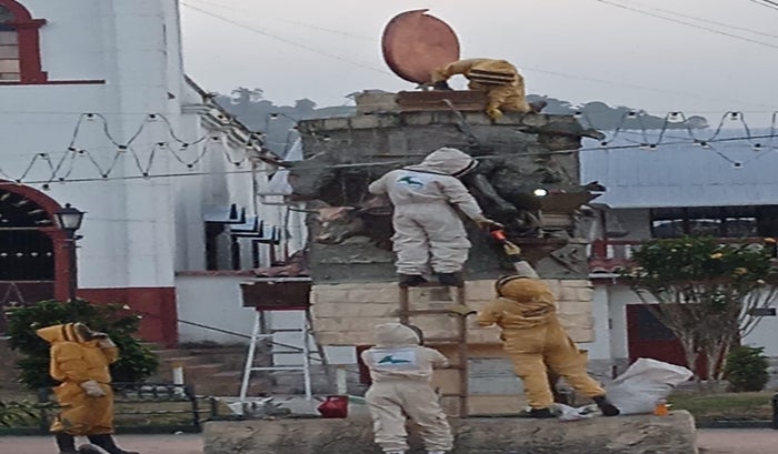 Ante las opciones que está evaluando el alcalde Iván Mauricio Pulido, se encuentra analizando derribar una parte del monumento para lograr una revisión interna de donde se encuentra el enjambre para salvar la vida de los propios y turistas que ya se han visto afectados por las picaduras de las abejas africanizadas que han formado su hogar en pleno parque municipal.
