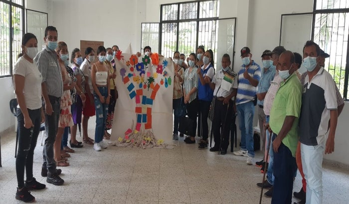 El árbol de la vida y la esperanza es otra de las actividades desarrolladas en el trabajo grupal y con el que los asistentes logran reflejar sus raíces, costumbres, tradiciones y comportamientos culturales, características que a pesar de tener sus diferencias son afines a un colectivo que los define como víctimas del conflicto armado.