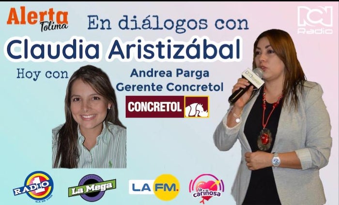 La fórmula seis de RCN Radio Ibagué, tuvo como invitada para éste 12 de agosto, en el programa Diálogos con Claudia Aristizábal, a Gerente de Concretol Andrea Parga.