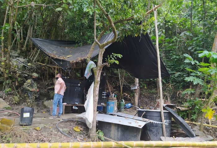 En ese complejo, se extraía oro de filón por medio de minería subterránea. En el lugar se encontró una trituradora de quijada, seis granuladores de 150 kilogramos cada uno, tres motores eléctricos, un taladro hidráulico, una motosierra y una bocamina donde había sustancias explosivas artesanales.