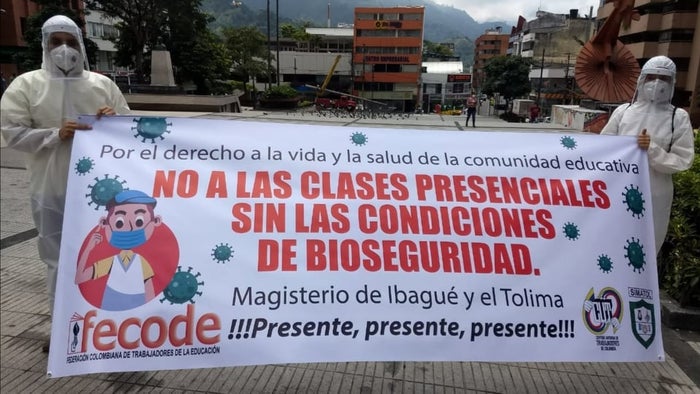 Las organizaciones sindicales aseguraron que siendo conscientes a la cuarentena y el aislamiento social, medidas efectivas para evitar la propagación del COVID-19, las protestas que se efectuarán en ciudades capitales, en el caso de Ibagué, al frente de la Gobernación del Tolima a las 9 de la mañana, cumplirán todos los criterios de bioseguridad como Pico y cedula, menores de 60 años, conservando la distancia de dos metros, elementos de bioseguridad: Traje, guantes, tapabocas, careta, termómetro y máximo 50 participantes, específicamente miembros directivos de los sindicatos.