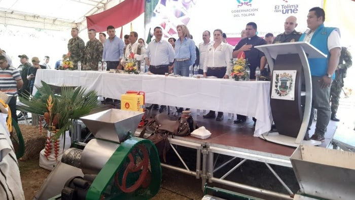 Familias productoras de Cafés Especiales del municipio de Planadas, recibieron de Gobierno departamental kits de insumos para postcosecha, que reforzarán y mejorarán la productividad de sus actividades agrícolas.