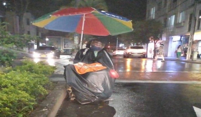 Según los ciudadanos, sobre la carrera Quinta con calle 11, se encontraba un hombre en condición de discapacidad, pidiendo alguna ayuda, bajo el torrencial aguacero que estaba presentando.