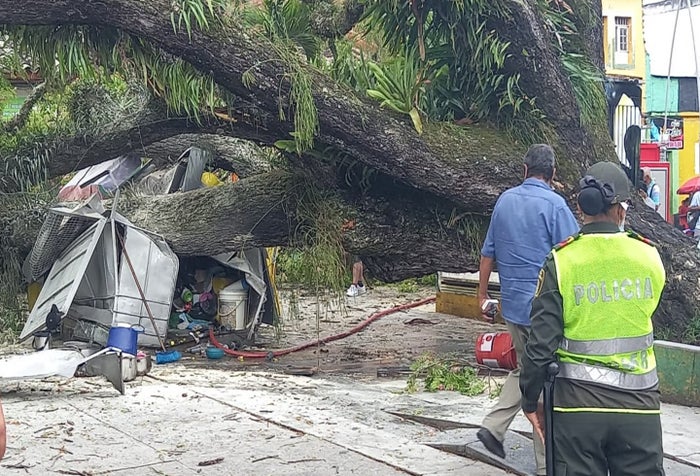Información suministrada a las noticias de La Cariñosa 1.420 AM da cuenta en el sitio una rama de gran tamaño quedó sobre una caseta de este lugar, donde funcionaba la venta de comida, al parecer propiedad de un par de abuelos, indicaron algunos testigos del caso.