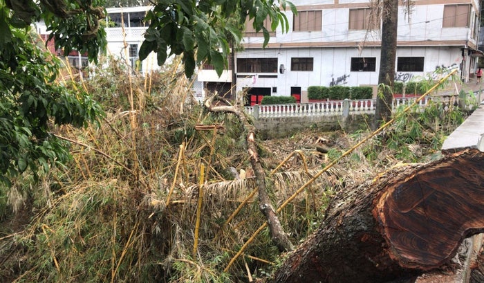 Ya han pasado más de 20 días luego de la infortunada tragedia en el sector del centenario de Ibagué donde lastimosamente una persona perdió la vida a causa de la caída de un árbol, y hasta ahora solamente terminaron de tumbar y podar los árboles que quedaban allí en ese corredor peatonal pero no han hecho no la limpieza pertinente y continúan las personas obligatoriamente pasando por la vía ya que ese andén sigue tapado con vallas y poli sombra, obstaculizando el paso de las personas.