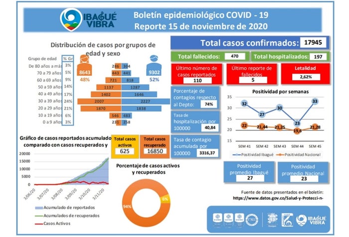 De igual manera, que el balance de fallecido fue de 5 ciudadanos y un total desde la pandemia de 470 personas. Frente a los hospitalizados reveló el Instituto Nacional de Salud que fue de 197 ibaguereños.
