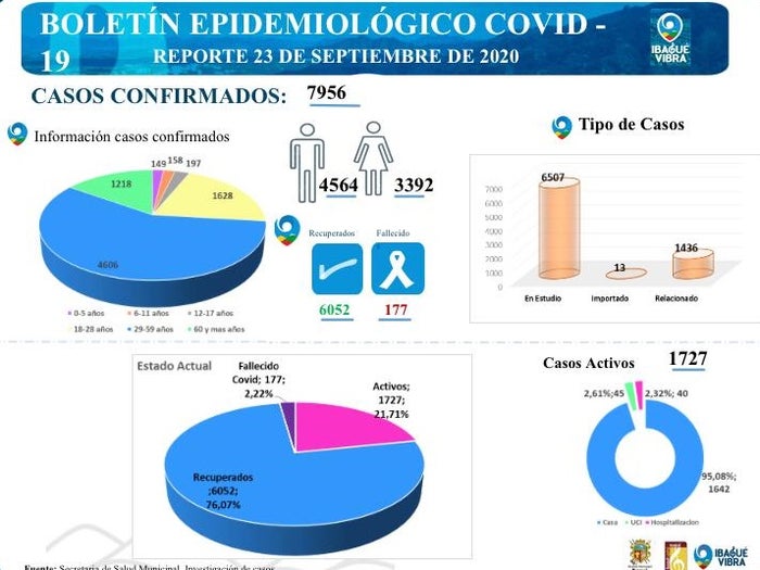 Total, de municipios con Covid-19: 44 localidades que representan el 93.61% de la región tolimense.