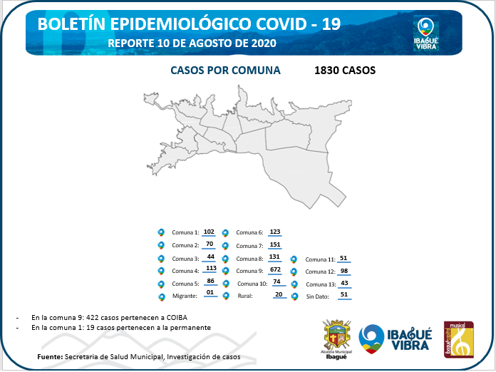 La Secretaría de Salud de Ibagué finalmente retomó el boletín epidemiológico de identificación de casos de personas contagiadas por la Covid-19 en las comunas de la ciudad.