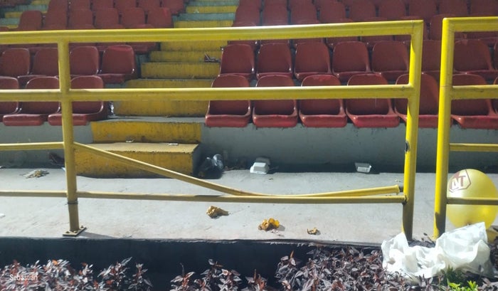 Al realizar un análisis de particulares zonas del estadio, se evidenciaron algunos daños en el camerino visitante, el palco y sobre una baranda y una parte del jardín del costado occidental, junto a uno de los arcos, aparentemente ocasionada por hinchas y miembros del club antioqueño.