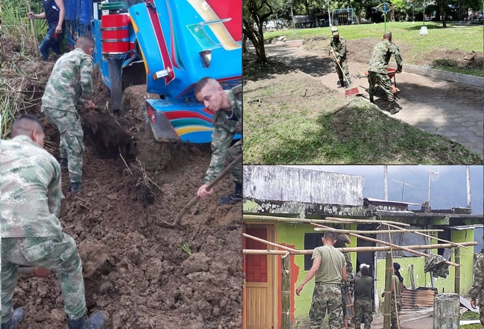 En una jornada cívico -militar, soldados del Batallón de Infantería n. 16 Patriotas de la Sexta Brigada del Ejército Nacional, en el corregimiento de Santa Teresa del municipio del Líbano, apoyaron con el mejoramiento del ancianato.