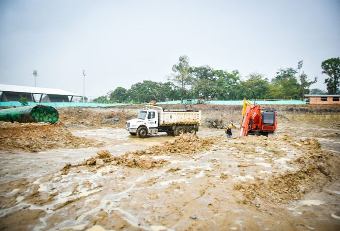 Sin embargo, el jefe de la Cartera recalcó que el proceso de excavación y retiro de cerca de 35.000 metros cúbicos de material ya está en el 90 %, y una vez inicie en los próximos días la cimentación de las primeras bases del Coliseo Mayor, el volumen de material a trasladar a la escombrera va a ser menor.
