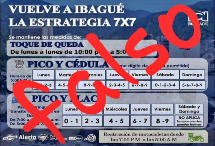 Rechazamos el uso de nuestra imagen y credibilidad para difundir noticias falsas, como la que circula bajo titular "Vuelve a Ibagué la estrategia del 7x7".