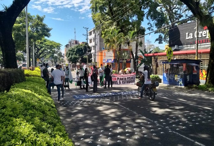 Estudiantes de la institución educativa San Simón en la ciudad de Ibagué, bloquean la carrera Quinta con calle 35 con la finalidad de exigirle al gobierno del al alcalde Andrés Fabián Hurtado garantías para el regreso gradual a clases este 12 de julio bajo la Alternancia Educativa. De acuerdo con el contralor estudiantil, Juan Hernández, no se puede volver a las aulas si hay incumplimiento en mejorar los entornos académicos.