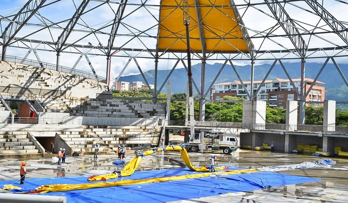 La obra de infraestructura deportiva más grande de la región entró en la última etapa de construcción, con la llegada de la membrana marca Serje Ferrari, maquilada en Perú. La estructura ya empezó a instalarse por partes desde este miércoles y de esta manera el proceso culminaría en las próximas tres semanas según conoció La Cariñosa 1420 AM, a través de la Secretaría de Infraestructura, pues las obras tienen un avanece del 82% en su ejecución.