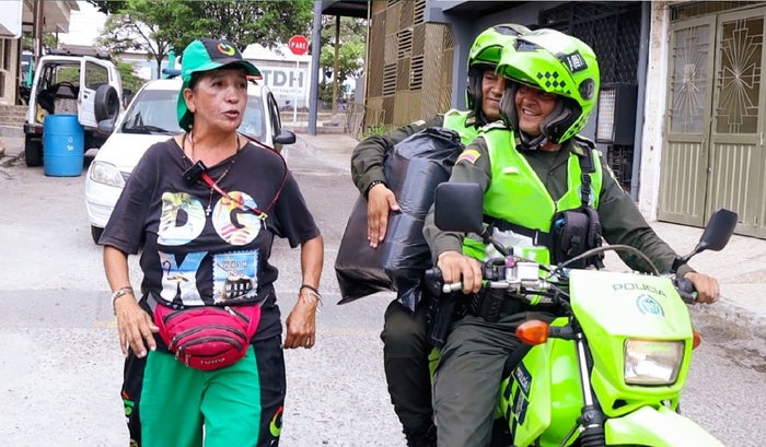 El pasado domingo de ramos, mientras la comunidad católica, celebraba la entrada de Jesús en Jerusalén, el subintendente Jairo Suarez y el Patrullero Andrés Claros, llegaban hasta el semáforo de Palermo, para sorprender a la señora Karina.