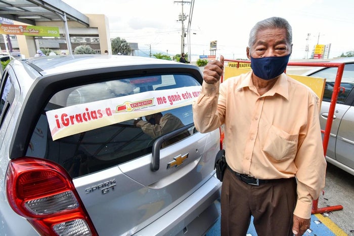 Cumpliendo con los estrictos protocolos de bioseguridad, la familia Mercacentro hizo entrega del vehículo al feliz ganador quien contó con la ayuda de su nieto Jonathan Rico, quien estuvo al tanto de cada uno de los requisitos que debían cumplir para recibir el premio.