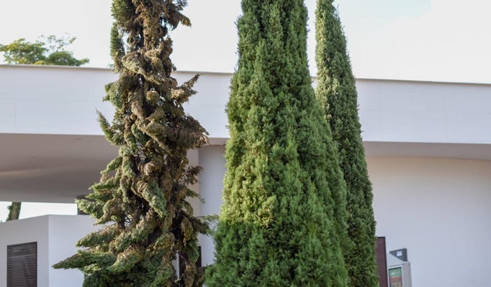 En la noche de este jueves, 8 de diciembre, inescrupulosos prendieron fuego a uno de los pinos del exterior de esta joya arquitectónica