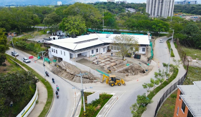 Actualmente, se está en la fase de acabados de fachada, ventanería y persiana perimetral; además se está terminando la instalación del alero azul, la estructura del cielorraso y el enchape de pared y piso en zonas húmedas.
