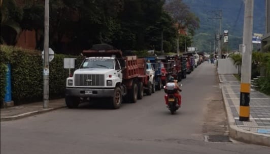 Por tal motivo, los conductores de aproximadamente 60 volquetas, se encuentran ubicados a esta hora en una vía adyacente a la avenida Guabinal con calle 60 llevando a cabo un platón pacífico y a la espera de reunirse con los representantes de una constructora y poder llegar a un acuerdo en el valor de los fletes, situación que ha esta hora puede provocar traumatismo vía en la zona, donde ya hacen presencia las autoridades de tránsito del municipio para regular la movilidad.