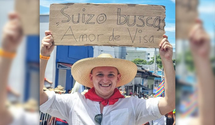 Durante las fiestas de San Juan y San Pedro, fue una de las personas que más se gozó los desfiles aunque ahora, lo entristece saber que dentro de unas semanas tendrá que partir del país por algo que le ha compartido a sus internautas; no ha podido solucionar su situación legal en Colombia pese a los cientos de requerimientos que ha pasado para poderse radicar, por esta razón de manera jocosa, durante las festividades desfiló con una pancarta que decía “Suizo busca amor de visa”, lo que ha logrado hacer que muchos busquen la manera de que Michael siga en el país promoviendo el turismo a extranjeros.