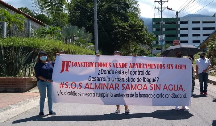 "Tenemos una acción de tutela y tenemos una acción popular que el municipio de Ibagué deben cumplir a nuestro favor, y pese a ello llevamos cuatro días sin agua, debo aclarar que personal de la constructora nos puso el servicio, pero hay que resaltar que la la problemática va más allá, porque el constructor JF sigue construyendo la quinta torre sin solucionar el problema de la falta de agua en el otros apartamentos", sostuvo Lis Villanueva, residentes de Ambalá parte alta.