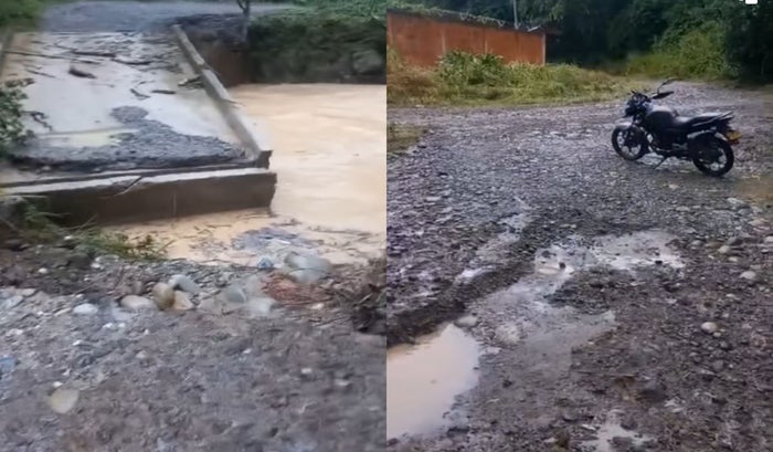 “Estamos incomunicados en la vía Guainí Ataco, con Chaparral porque el puente se cayó ya que se lo llevó la quebrada y estamos sin paso”, expresó el ciudadano en el video.