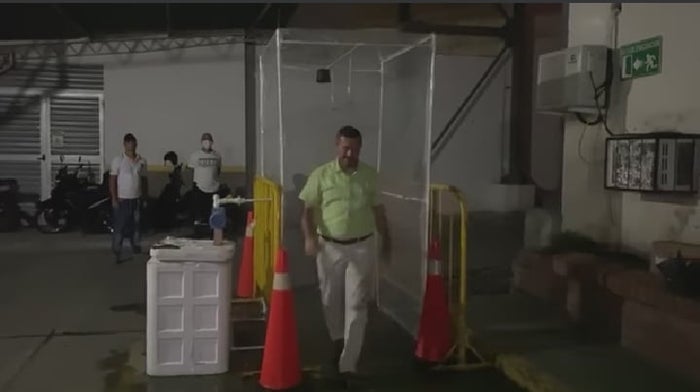 En ese sentido, el Alcalde Juan Carlos Tamayo realizó las primeras pruebas piloto, de la cabina de desinfección, donada por la Secretaría de Planeación, Infraestructura y Medio Ambiente, que lidera el Ingeniero Abel Otálora Arias, para uso exclusivo de los funcionarios de la administración municipal, con el fin de disminuir el riesgo de contagio por COVID-19.