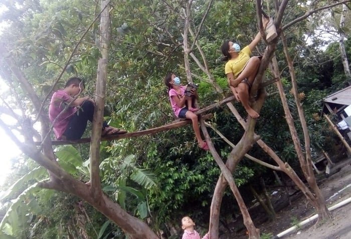 En la vereda Caracolí, los niños deben trepar al árbol para lograr tener señal y poder recibir sus clases virtuales.