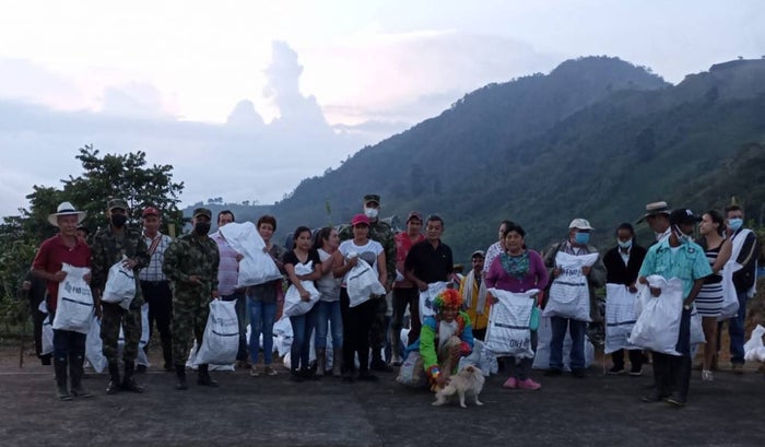 Las familias pertenecientes a la vereda Alto de San Juan recibieron diferentes ayudas, entre ellas, la entrega de mercados, kits de aseo personal y de cocina.