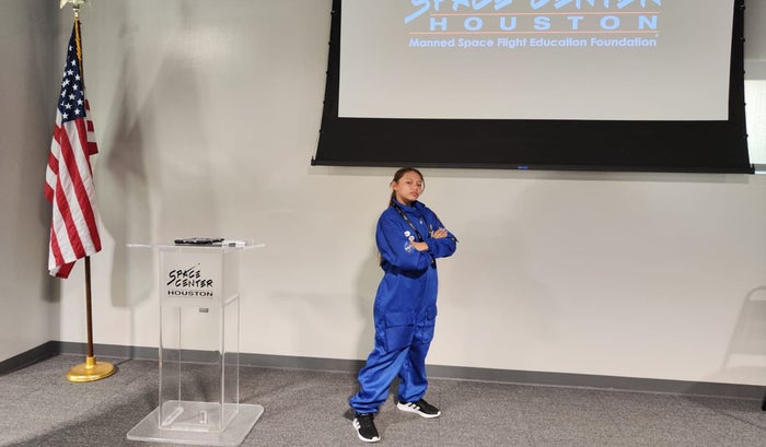 Karen Sofía, la mejor estudiante de su colegio, en El Espinal, una niña que sueña con ser Ingeniera Aeroespacial, que se preocupa por aprender cada día y que gracias a esto fue seleccionada, entre muchas en Colombia. para representarnos en un evento que es el primer paso al regreso a la Luna desde NASA.