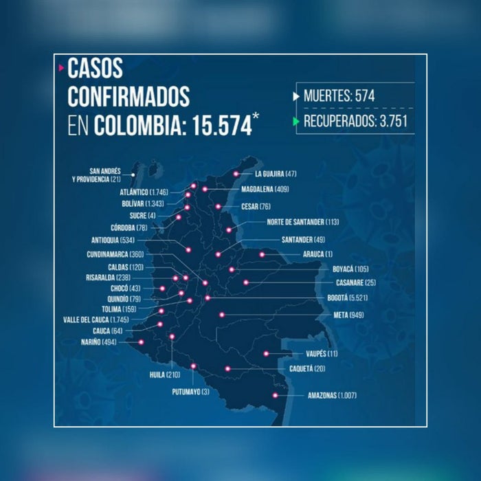 Así las cosas, Colombia llega a los 15.574 ciudadanos infectados por Covid-19; 3.751 recuperados y 574 fallecidos.