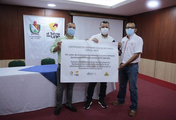 Sin embargo, en las últimas horas se dio a conocer una noticia positiva para el municipio de Villarrica, tras aprobarse los recursos para la compra de un vehículo compactador de basuras para esta población, así lo dieron a conocer el gerente de la EDAT, José Dayler Lasso y el gobernador del Tolima, Ricardo Orozco Valero.