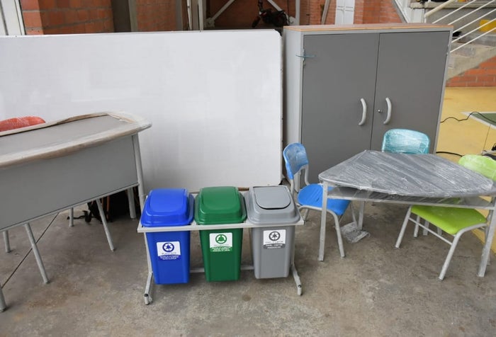 En el marco del proyecto denominado, “Dotación del mobiliario escolar en los establecimientos educativos de los municipios Zomac”, se entregaron formalmente 734 puestos de trabajo preescolar, 476 puestos de trabajo para los docentes, 476 muebles de almacenamiento para las aulas, 476 tableros de marcador borrable, 476 puntos ecológicos para 476 instituciones educativas de los municipios de Ataco, Chaparral, Dolores, Planadas, Ríoblanco, Roncesvalles, Rovira, San Antonio.