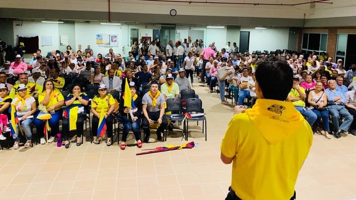 El encuentro se realizó en el auditorio del Colegio Americano de Ibagué y contó con la asistencia de ex miembros de la fuerza pública y sus familiares, quienes le manifestaron su apoyo total al candidato de Colombia Renaciente y Cambio Radical.
