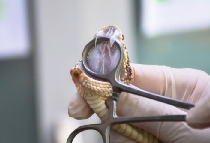 “Durante la evaluación de las serpientes se pudo verificar, la deshidratación y la desnutrición de los individuos. Se les puso alimento pero no reaccionaron por sí mismas, así que tuvimos que alimentarlas a través de sonda. Una de las serpientes hembra está en un estado delicado y ya se le han practicado radiografías y ecografías para proceder con el tratamiento de recuperación” indicó Delio Orjuela administrador del Centro de Atención y Valoración de Fauna Silvestre Cav de Cortolima en convenio con el Hospital Veterinario de la Universidad del Tolima.