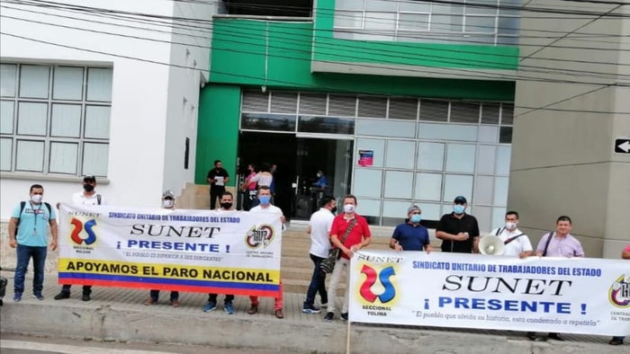 La Junta Directiva de Sunet Tolima, realizó jornada de protesta este viernes, frente a las instalaciones de la Empresa de Servicios Públicos de Melgar Empumelgar y la alcaldía municipal de esta localidad, como rechazo a las presuntas acciones desplegadas por parte del Alcalde Agustín Manrique y el gerente de la empresa de servicios públicos Rodrigo Hernández, contra los trabajadores sindicalizados.