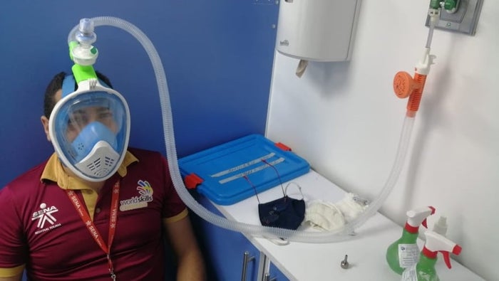 De acuerdo a información oficial del SENA regional Tolima, una de las herramientas diseñadas por Facilitadores de Tecnoacadenia de la entidad para contener la pandemia, es una máscara de buceo full-face para ventilación no invasiva, la cual limita la presión de los pulmones en pacientes con enfermedades respiratorias y en este caso, puede ser de vital ayuda para aquellos con sintomatología del COVID-19.