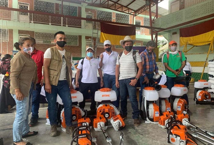 Guadañas, motosierras y fumigadoras de motor, hacen parte de las herramientas entregadas a los productores.