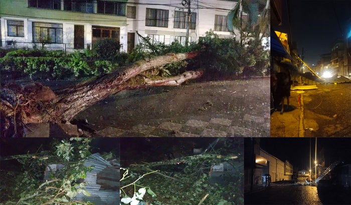 Sobre las 6:00 de la tarde empezaron a llegar reportes desde diferentes sectores como la carrera Quinta entre calles 19 y 25, en la calle 23 con avenida Ferrocarril, barrio San Pedro Alejandrino, Las Brisas, El Bosque, El Planchón, Independiente, Galarza, Arado, avenida Guabinal entre Interlaken y Pueblo Nuevo, donde la ciudadanía avisaba de árboles y postes caídos, techos levantados y cortes de luz.