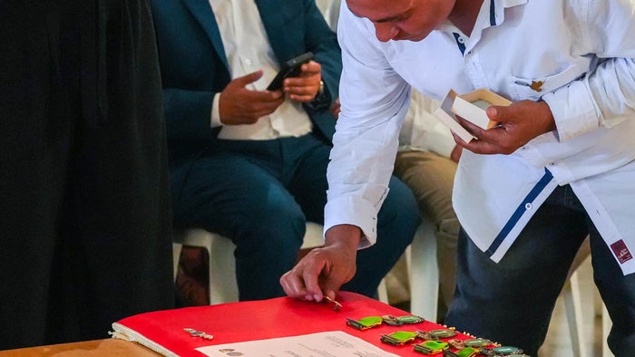 Uno de los momentos más conmovedores fue el acto simbólico de entrega de medallas y reconocimientos a familiares de víctimas que habían sido dadas por desaparecidas y luego identificadas. Entre ellos: