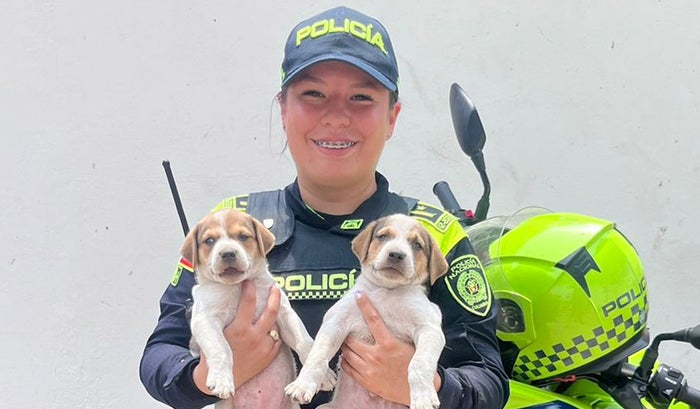 En un ángel se convirtió la patrullera Valentina para unos bebés caninos y su madre