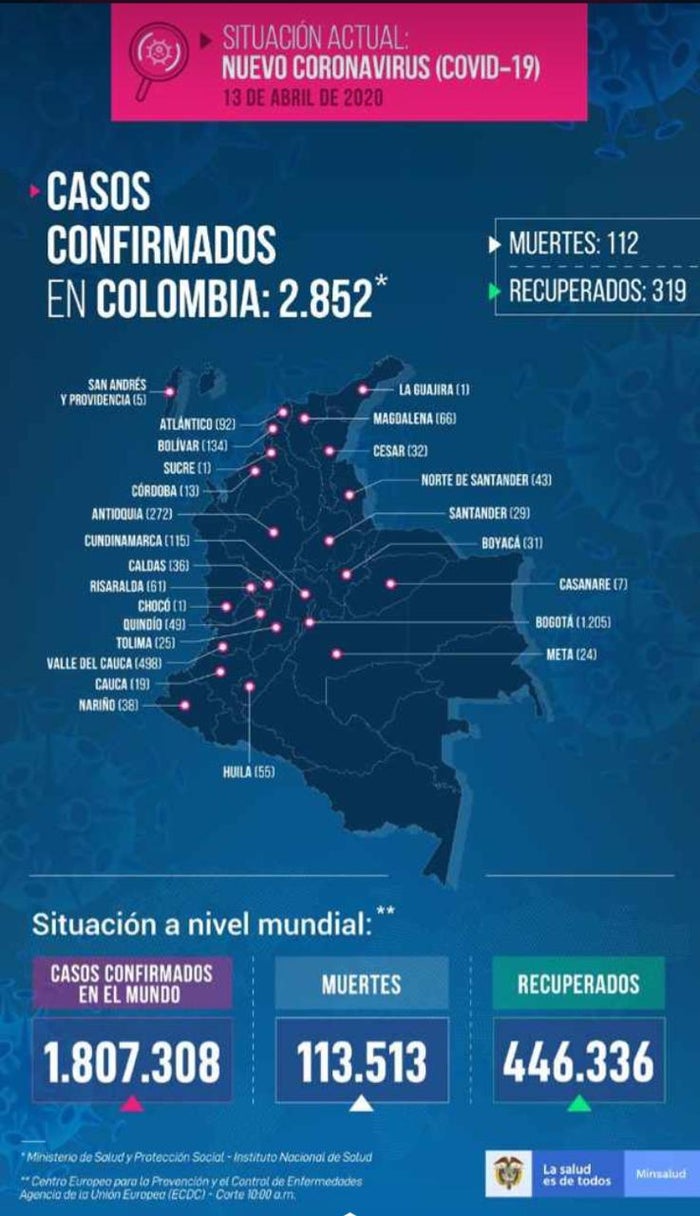 por su parte, Minsalud confirma la recuperación de 49 pacientes con coronavirus y 3 fallecidos. Así, el total de personas recuperadas llega a 319, los pacientes con COVID-19 son 2.852 como se había manifestado anteriormente y las víctimas fatales con un total de 112 muertos por esta pandemia.