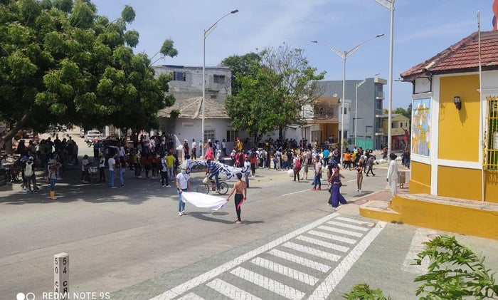 Estudiantes de la facultad de Bellas Artes de la Universidad del Atlántico, se sumaron a la jornada de protesta, con una manifestación artística que se inició con una concentración en la sede de la casa del Carnaval, en el barrio Abajo, para luego adelantar una marcha que recorrió sectores del centro y norte de la ciudad de Barranquilla.