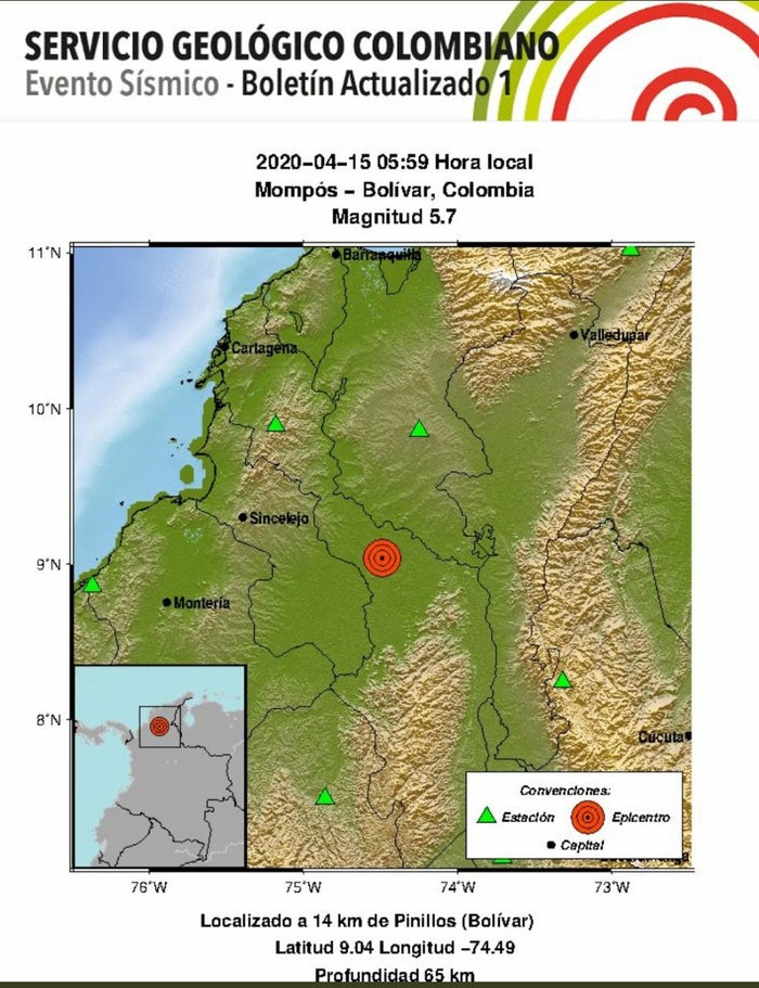 La directora del SGC, Martha Calvache, en conversación en RCN Radio, manifestó que el epicentro efectivamente se presentó en el municipio de Mompós, en Bolívar, con una profundidad de 65 km.