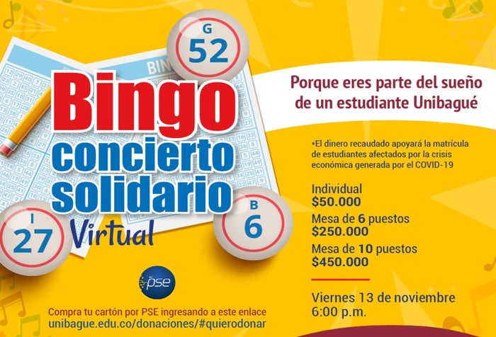 El bingo se realizará el próximo 13 de noviembre a partir de las 6 de la tarde, por lo cual, una vez se confirme la compra la Universidad procederá a enviarle a los aportantes sus cartones y el método de ingreso.