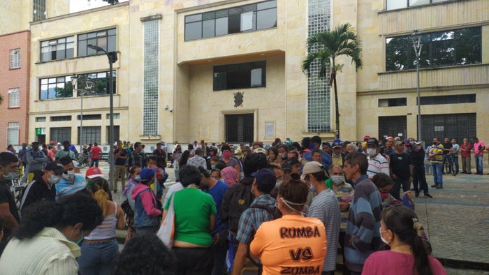 A esta hora, cerca de 100 personas entre vendedores informales, habitantes de calle y mujeres madres cabeza de hogar, están aglomerados a las afueras de la Alcaldía de Ibagué, pidiendo ayuda para cumplir con el toque de queda.