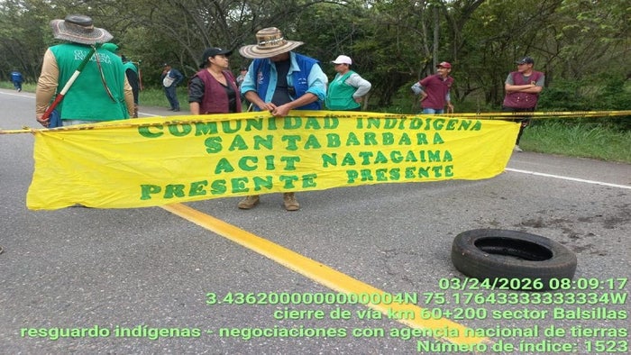 Las comunidades indígenas continúan realizando bloqueos en la vía que comunica al Tolima con el sur del país, el resultado se siente directamente en la movilidad. Los bloqueos se encuentran específicamente en Natagaima, donde el paso vehicular permanece restringido de manera intermitente.