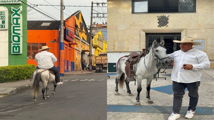 El concejal Giovanny Martínez, quien reside en la zona rural, protagonizó una curiosa escena al llegar al Concejo Municipal montado en su caballo, subrayando la importancia de participar en iniciativas que contribuyen al cuidado del medio ambiente.