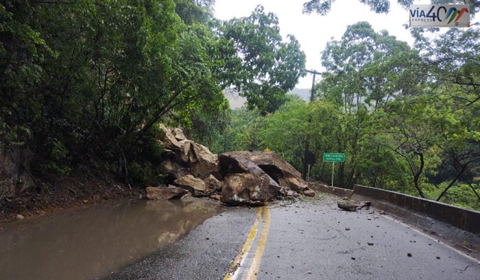 "Unidades de Vía 40 Express realizan la atención a esta situación tras caída de roca y las labores de limpieza para habilitar la vía tan pronto sea posible. Conduzca con precaución y manténgase atento a la señalización", dijo la entidad.