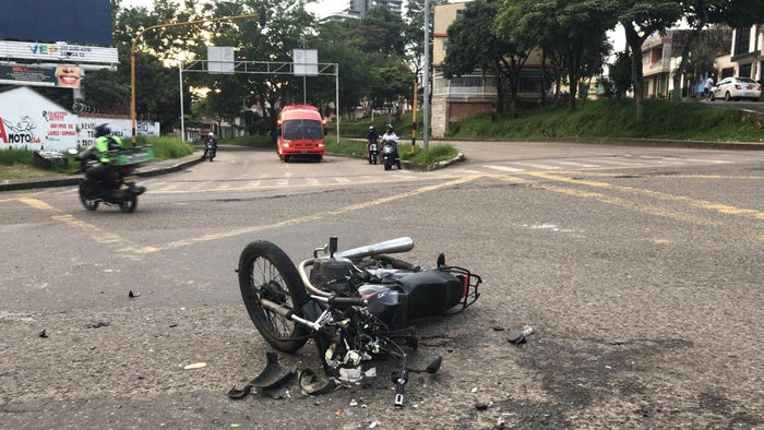 Los vehículos involucrados una motocicleta de placas JEC 75C y un carro de estacas SVM 055. El conductor de la motocicleta fue trasladado a la clínica Asotrauma.